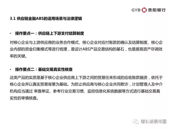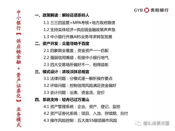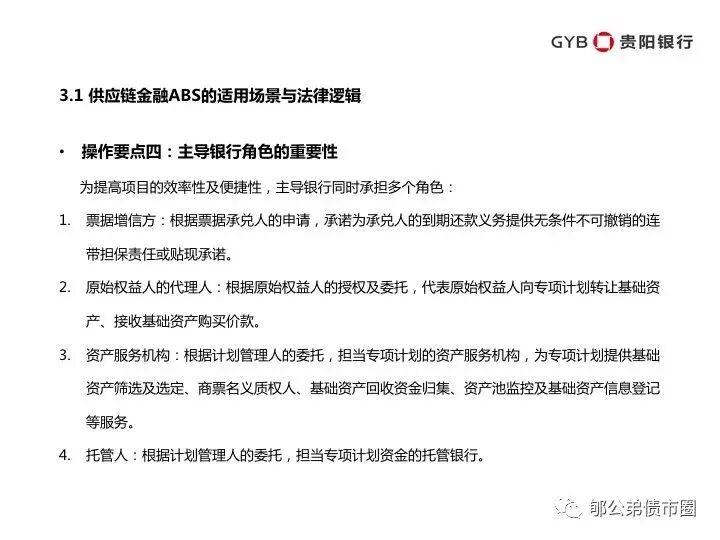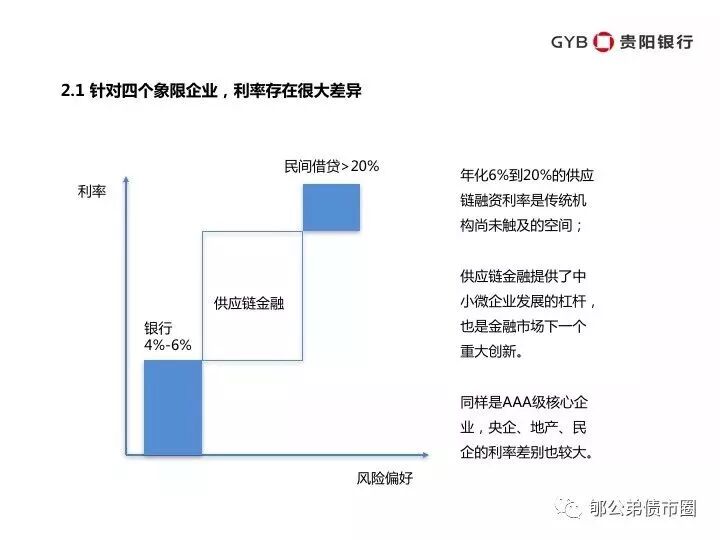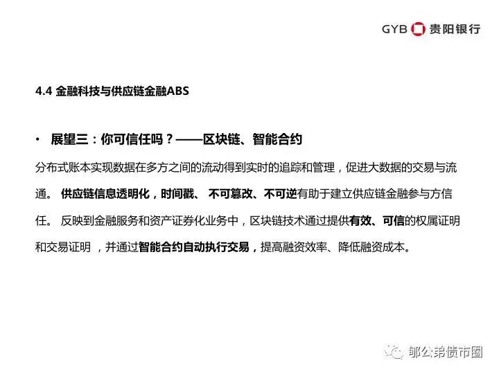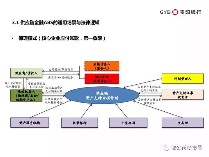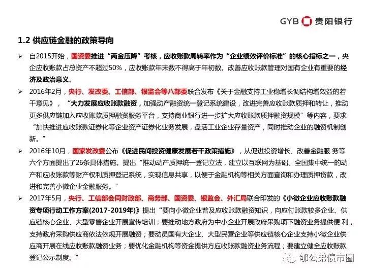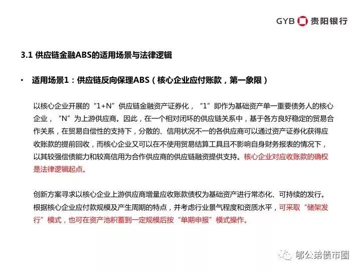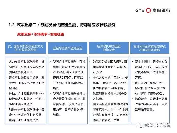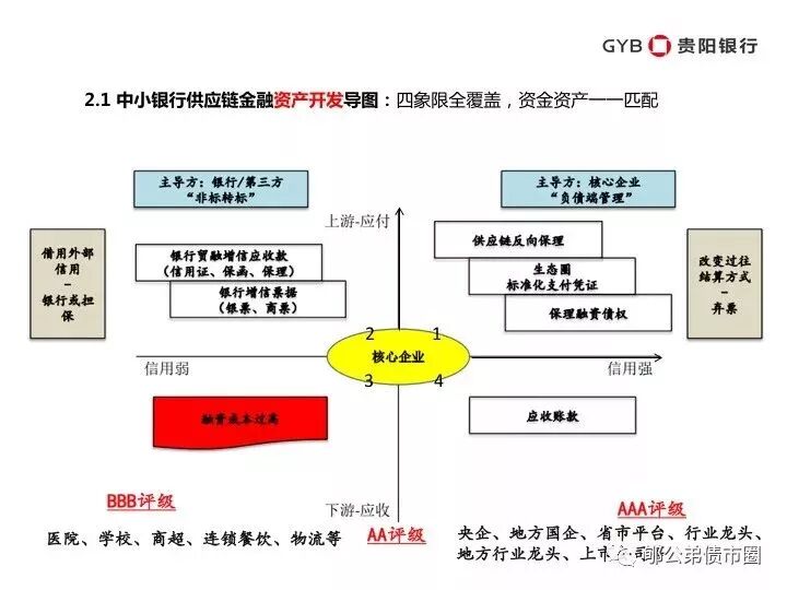 对于信用低于AA的核心企业而言,要在资本市场上实现直接融资或流动是难以实现的,这时引入金融机构的信用就是必须的。银行资管业务可以探索的“交易型”“流转型”“资本中介型”等业务也将空间巨大。