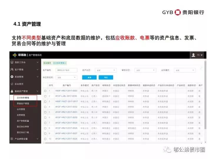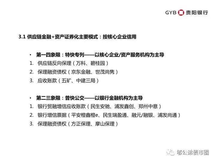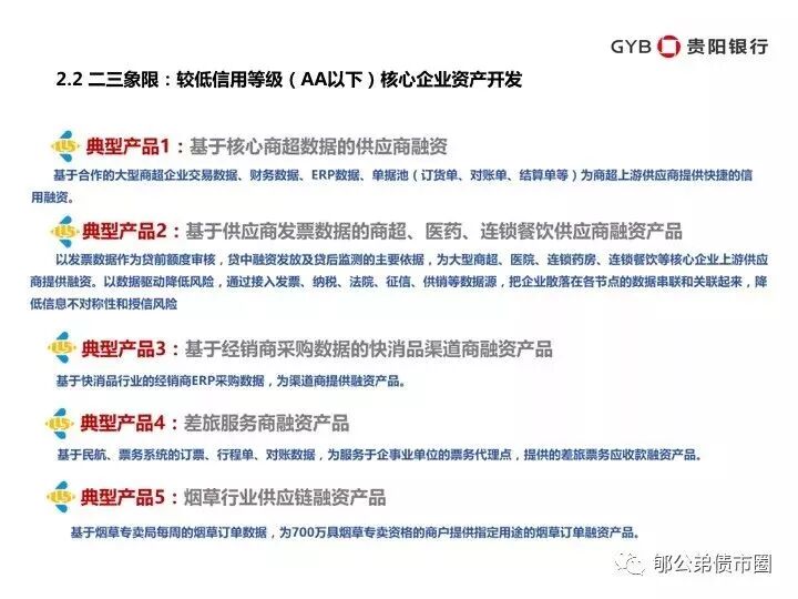 既包含AAA、AA+、AA等高信用企业的应收账款、应付账款资产开发,也包含医院、学校、商超、连锁餐饮等中小银行更本土化资产开发。