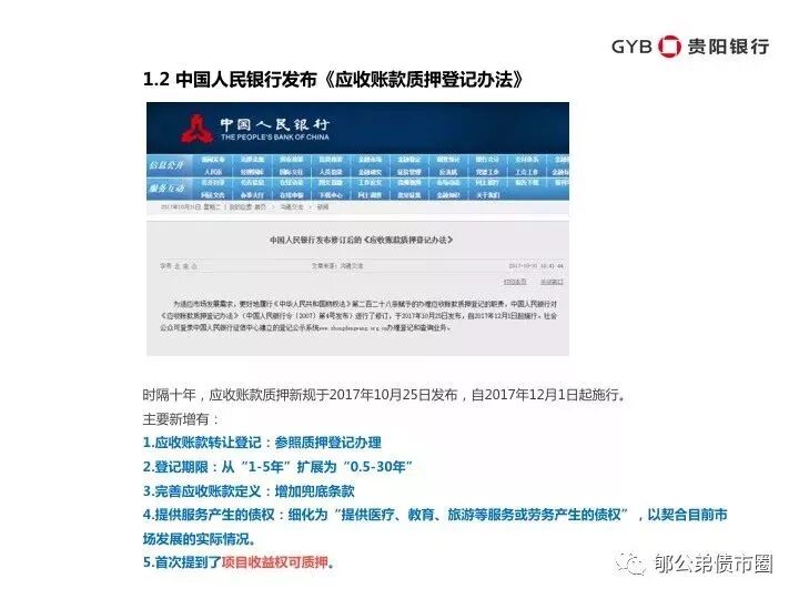 2016年2月,央行、发改委、工信部、银监会等八部委联合发布《关于金融支持工业稳增长调结构增效益的若干意见》,提出“大力发展应收账款融资,加强动产融资统一登记系统建设,改进完善应收账款质押和转让,推动更多供应链加入应收账款质押融资服务平台,支持商业银行进一步扩大应收账款质押融资规模”等内容,要求“加快推进应收账款证券化等企业资产证券化业务发展,盘活工业企业存量资产,同时推动企业的融资机制创新。”