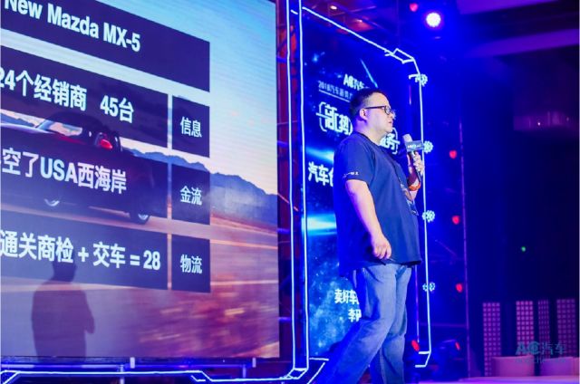 再讲一个海外的事情,马自达的新MX-5,全球最受欢迎的一款跑车,不在中国上市,但是中国消费者想买这款车,服务很多的经销商问我们说有没有办法搞到这款车,因为在美国已经上市了,对我们来说也不是难的事我们也不务正业一把,我们找宁波的进口商,同时联络上各地的小经销商来收单,28天之内完成什么事情,27个城市24个经销商,凑了45台的订单,委托宁波的供应商去美国西海岸采购,买车钱是卖好车出的,我们出了供应链金融的钱,买光了美国西海岸的车子。 接下来报关的服务由我们来做,因为我们和海关关系非常好,28天后,45个客户飞到宁波交车,这是中国第一批,也是最后的一批新MX-5车主。这是2B平台在做的事,我们发现这个也很有价值。
