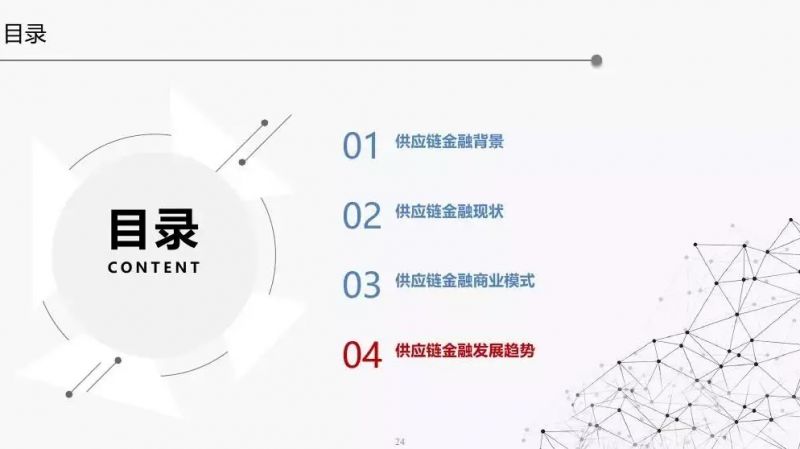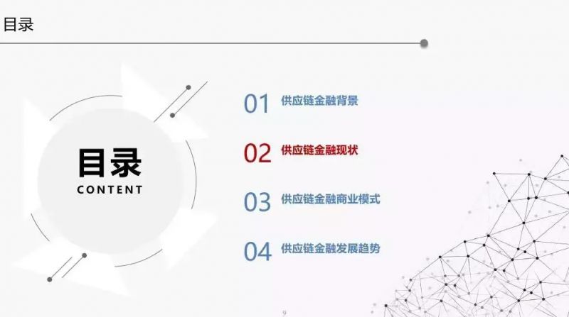 本文以PPT的形式,从供应链金融背景、现状、商业模式以及发展趋势等角度分析。
