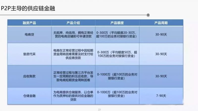 供应链金融的五类商业模式:银行、第三方支付、电商、供应链/物流、P2P。