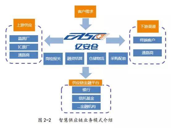 秘书处 关于广东亿安仓供应链科技有限公司 一、 概况 广东亿安仓供应链科技有限公司(以下简称“亿安仓”)是隶属于中国电子信息产业集团(CEC)旗下,由深圳中电国际信息科技有限公司(以下简称“中电港”)的全资控股的子公司,致力于成为电子信息产业智慧供应链公共服务平台,以客户需求为导向,创新电子信息产业供应链服务,提供数据搜集、储存、整理、分析及决策支持,高效协同产业链上下游,满足智能制造转型升级的需求,发展电子信息产融数据平台,构建网络化供应链生态体系,推进协同制造新模式,服务电子信息产业供给侧结构性改革。 电子信息是当今创新能力最强发展速度最快的产业。无论是上游的元器件设计、生产和分销还是中下游的整机、系统制造商,产品、技术迭代更新快、规格型号多、应用范围广,致使渠道和交易模式错综复杂。市场亟需集专业化服务、大数据支撑、网络化共享、智能化协作的产业智慧供应链,进行资源整合和流程优化,促进上下游企业 协同发展,精准匹配供需,降低经营和交易成本,提高产品和服务质量,拓宽中小微企业的融资渠道。 亿安仓依托中电港三十多年元器件分销经验和专业人才队伍,专注以元器件为核心的供应链服务,通过专业仓储物流体系建设和以信用评估体系为核心、容纳第三方金融机构的供应链金融体系建设,以及信息系统建设,为满足客户需求,提供高质、高效的采购执行、物流服务、销售执行、融资结算、商检报关等一体化专业服务,促进产业融合,有利于加快上下游建立合作共赢的协同发展机制,服务电子信息产业供给侧结构性调整,助力智能制造转型升级。 二、核心业务建设 智慧供应链 亿安仓主要负责智慧供应链业务,在产业互联网的发展趋势下,通过“两硬一软”,提供大数据搜集、整理、分析及决策服务,形成网络化供应链生态体系,发展协同制造新模式,积极向供应链公共服务平台转型。智慧供应链平台以仓储物流和资金能力为基础(两硬),以高效的信息化平台为核心竞争力(一软),将业务流作为基本操作单元,对业务流中的信息流、资金流、物流进行“三合一”管理,在保障资金安全的前提下,促进产融结合,提升产业的供应链效率,为客户提供有价值的供应链协同服务,满足柔性制造转型升级的需求,助力电子信息产业的发展,并保障和推动公司规模业务的提升。 智慧供应链整体规划主要由专业仓储、业务信息管理系统和风控系统等三个建设内容。专业仓储将给元器件设计公司、电子信息产业客户群体,提供一个开放的第三方元器件专业化仓储配送、信息化管理等仓储物流综合服务;业务信息管理系统将加快完善产业数据信息交换接口,汇聚元器件上下游业务交易信息,为供应链业务系统提供足够的产业大数据支持;风控系统依托云服务体系架构,由独立、专业的风控业务团队,通过大数据分析将金融与元器件业务结合起来,形成对供应链业务的风控管理模型,为产业提供各种信用服务,解决电子行业企业融资难问题,促进产融结合,发展规模交易。 智慧供应链主要服务有以下几种服务: 1. 商务协同服务 商务协同服务为电子信息产业链中各环节的核心企业,提供开放的集第三方元器件专业化仓储配送、信息化管理等服务为一体的综合业务。其中包括为客户提供一站式解决服务方案、专业客服团队、需求预测管控、需求预测管控和产业金融等服务。 (1)一站式解决服务方案 提供订单管理、库存管理(VMI、JIT)、价格管理、客户需求预测管理、许可证办理、供应商资质认证、多币种交易、跨境付款等专业化服务,帮助客户实现一站式采购,缩短采购流程,降低客户成本。 (2)专业客服团队 公司拥有百人以上规模的专业客服运营团队,提供客户实现从采购源头到订单交付的全流程商务服务,致力于为客户降低企业非核心业务的运营成本,提升客户生意周转效率。 (3)采购预测管控 以 DMS 信息管理理念,获取客户较为准确的短期、中期预测,提前做好物料采购准备,用准确的预测缩短货期,按客户交期要求及时交付。 (4)需求预测管控 自建强大的数据分析模型,通过供需两端数据分析,及时预警,降低客户供应链运作风险。 (5)产业金融服务 在代采代购过程中,提供代垫资金服务,及时缓解客户资金压力,减少客户资金占用,并提供灵活的账期组合,供客户自主选择。同时可为客户提供国内人民币结算、境外美金结算等多币种的跨境交易金融服务。 2. 供应商协同服务 依托丰富原厂代理资源和业内多年深耕细作,可按照客户需求,快速整合货源渠道,并利用良好的渠道管理经验和管控体系,实现供应的成本优势和品质保证,包括为客户提供精益库存管理、客户采购渠道整合和 EDI 数据对接等服务。 (1)精益库存管理 建设 B2Bi 信息系统平台,通过多年运营的大数据分析,以及各领域行业发展趋势的把控,积累了各行业领域的库存管理策略模型,实现安全库存管控和超期预警管理;同时针对 VIP 客户,提供 VMI至尊服务。 (2)客户采购渠道整合 提供代采代购服务,协助客户收敛供应商渠道,为客户打造快速、绿色、低风险的供应商运营管理体系。 (3)EDI 数据对接服务 提供成熟的 B2B 对接方案,实现供应链上下游企业之间数据实时无缝对接,推进物料共享。 (1)专业仓储服务 拥有完善的仓储布局,香港和内地仓库多点布局,提