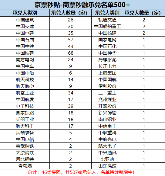 500+商票承兑名单