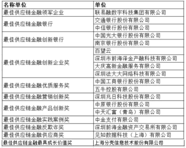 2020年第四届中国供应链金融“行业标兵大奖”评选理由公示